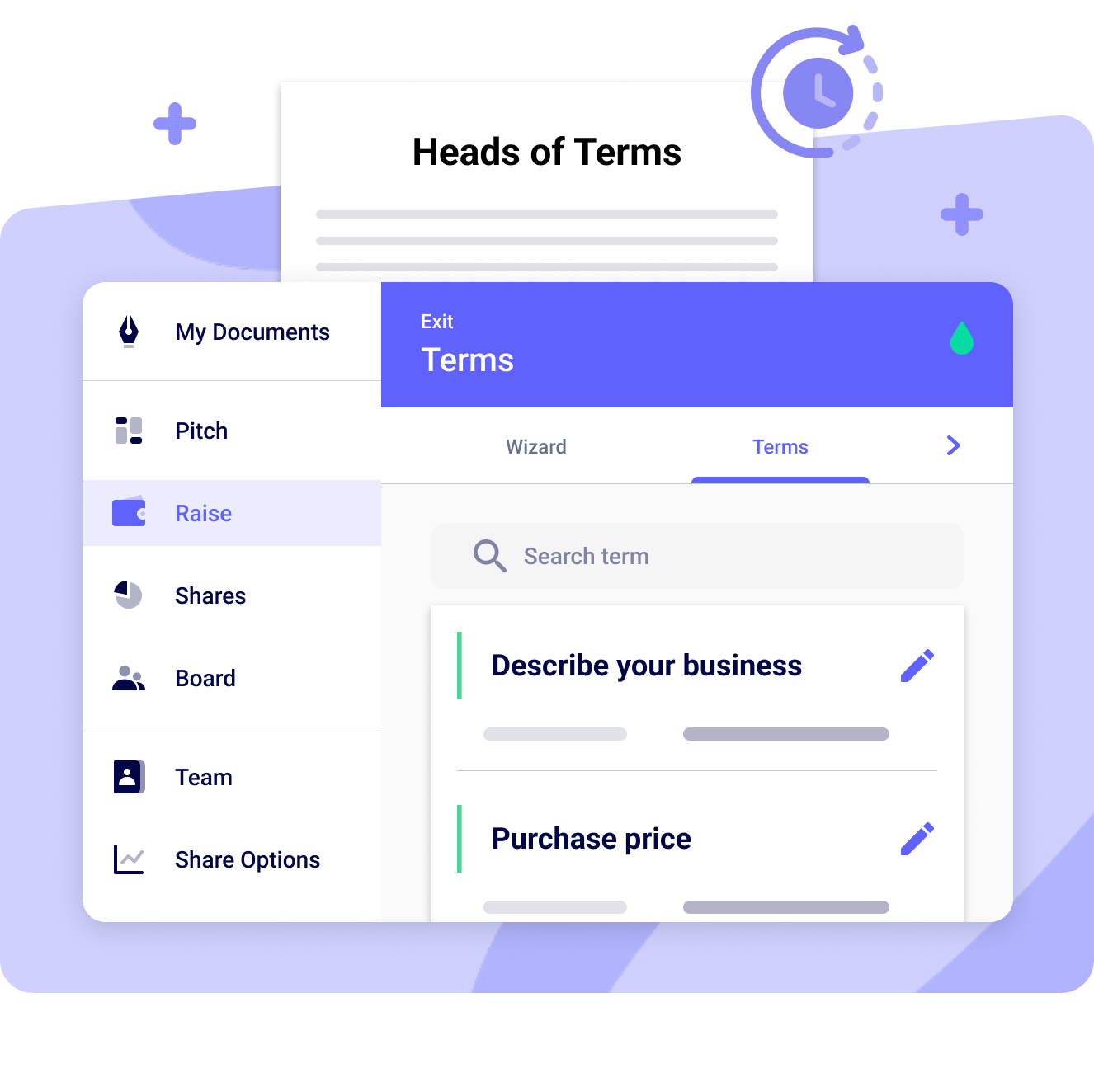Instantly create every agreement with every term exactly how you want it. Our specialists are on hand to guide you through the terms so you can choose what's right for your company. Send to potential buyers with an optional NDA.