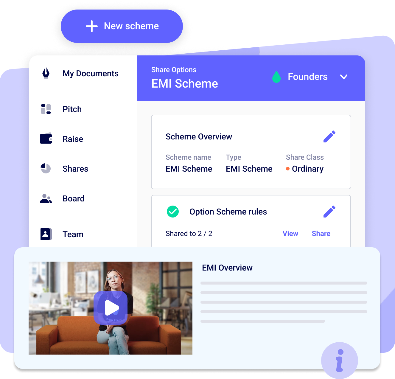 Employee share schemes used to be a headache. Now they’re fast and foolproof. Just build your scheme using our tried-and-tested templated terms. We’ll check the details, create the rest of the docs and guide you through every step.