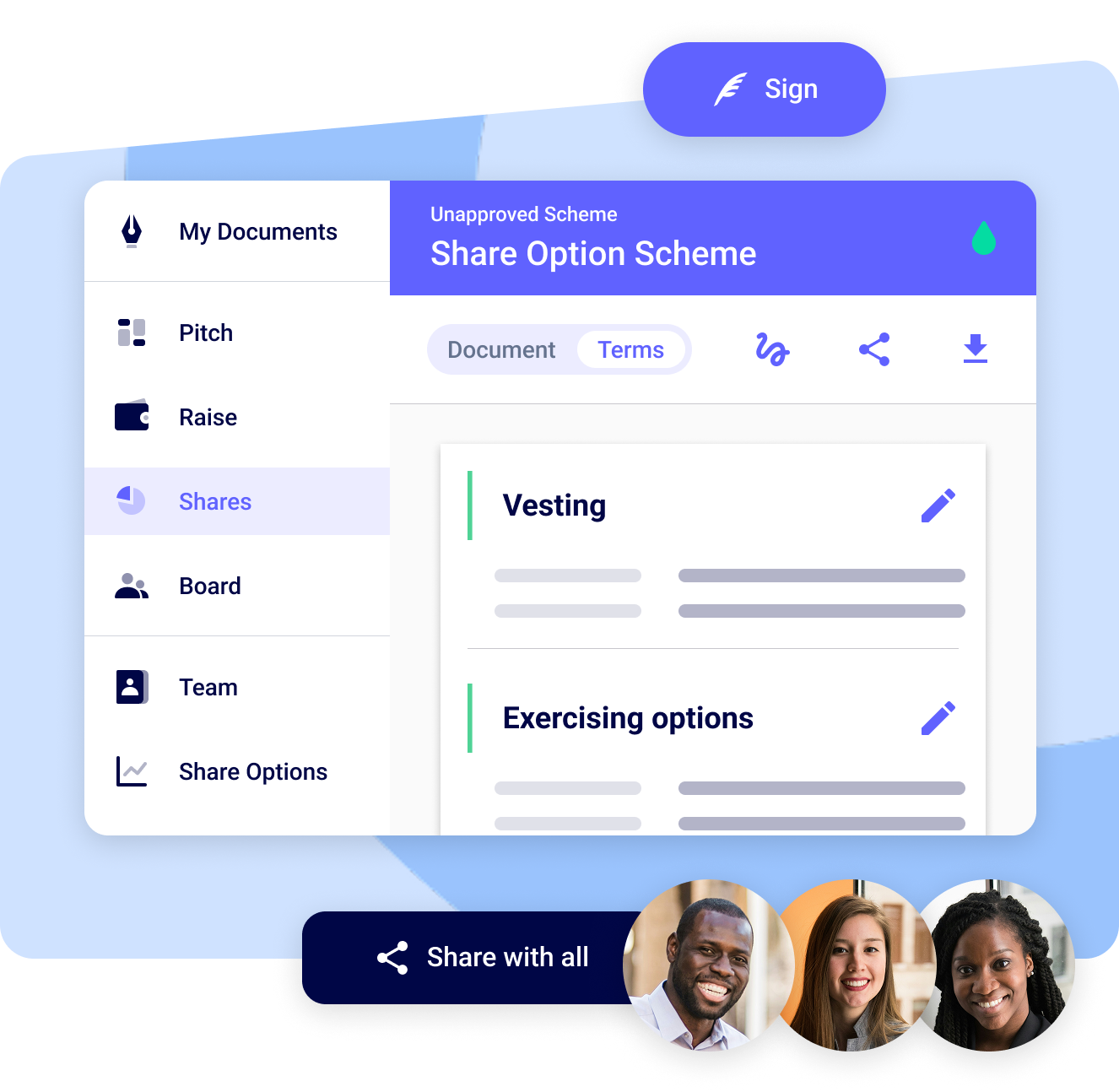 Share and collect signatures online via SeedLegals
