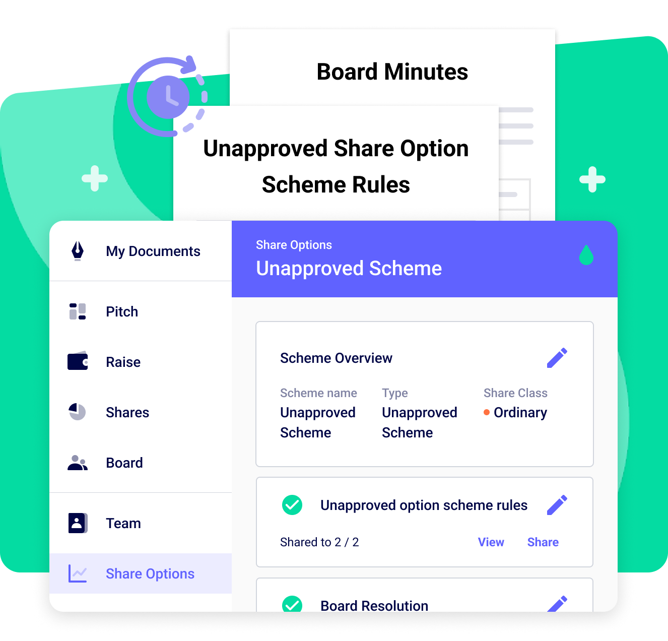 Generate all the legal documents automatically. Need some help? Our options experts review your scheme and are on hand when you have questions.
