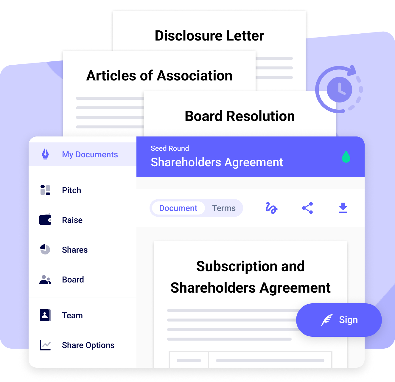 Share and collect signatures online via SeedLegals