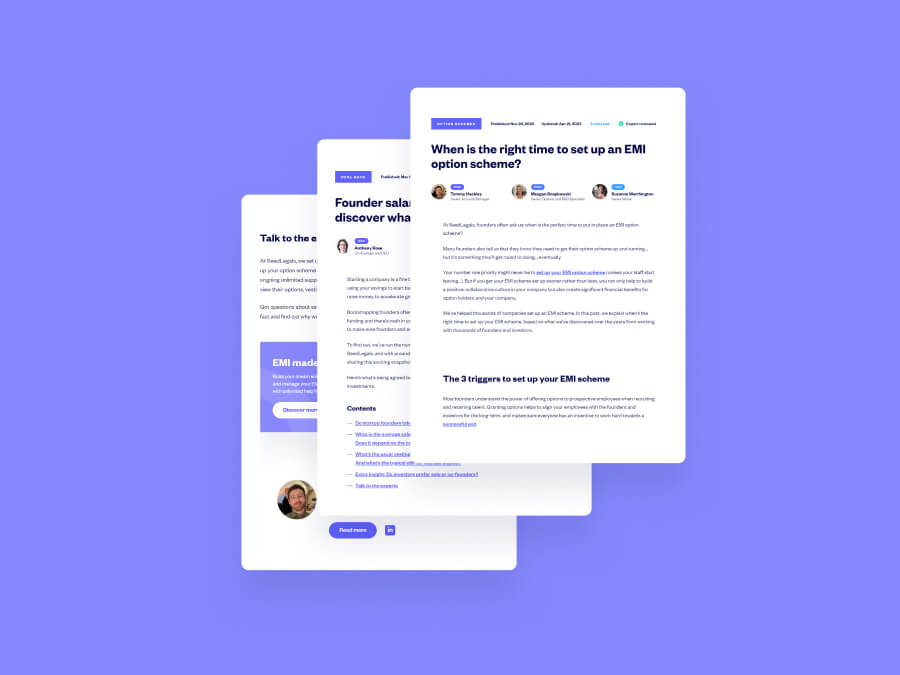Our posts explain all about tax-advantaged EMI options and more flexible Unapproved options. We explain how options work and how to use them to attract and retain talent.