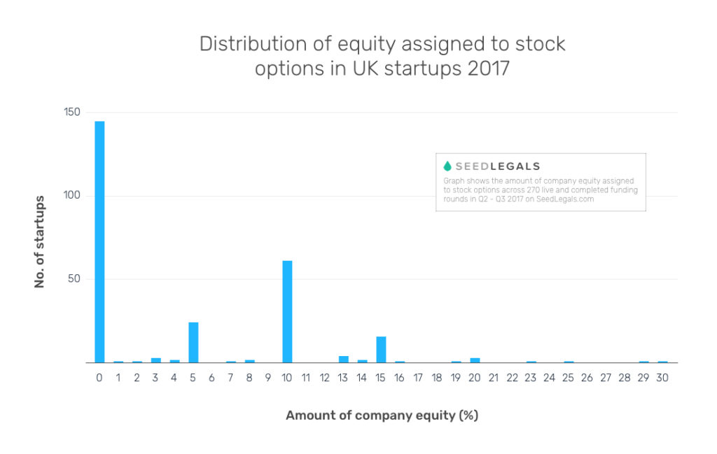And for those that do offer team options, 10% is the median amount of equity assigned to the employee options pool.