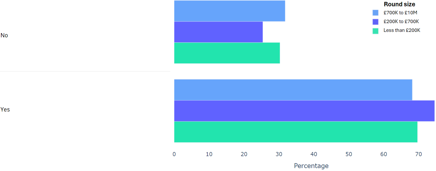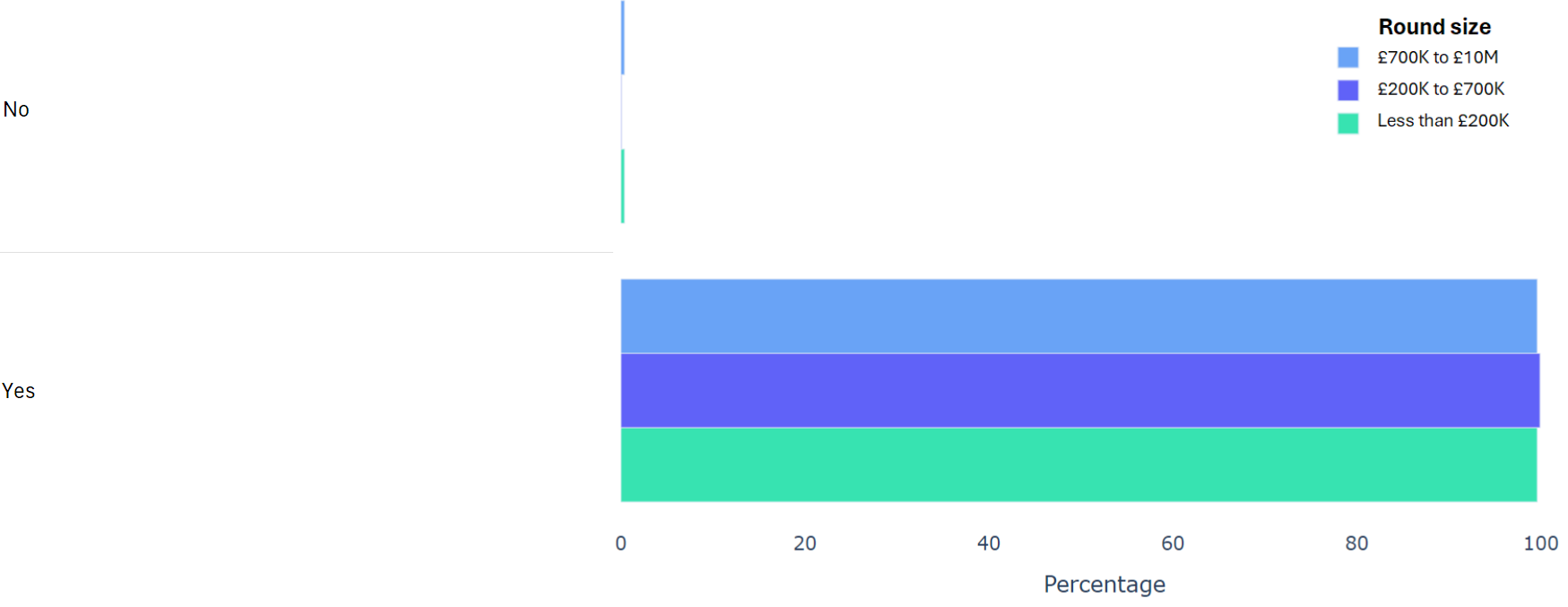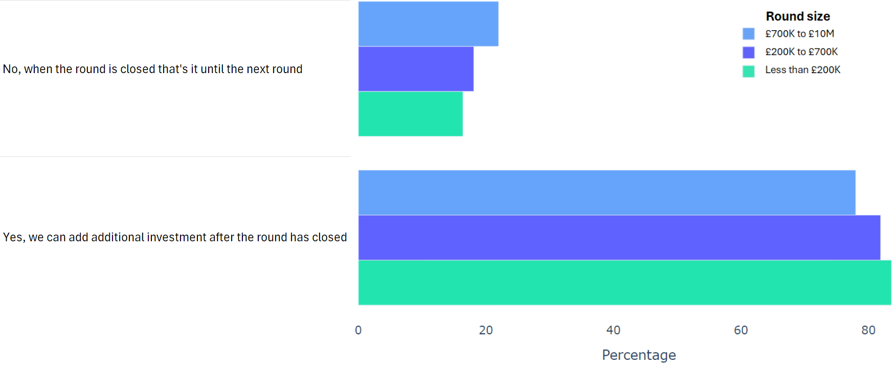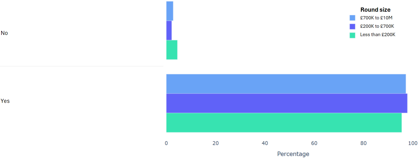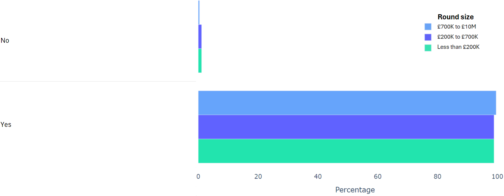 Using data from 2000+ funding rounds done on SeedLegals, we analysed each of the key terms that founders and investors negotiate in funding rounds done on SeedLegals. We then grouped those into Small (under £200K), Medium (raising £200K to £700K) and Large (£700K to £10M+) rounds. We then created histograms for each deal term, for each round size, to show you what’s market standard for your round.