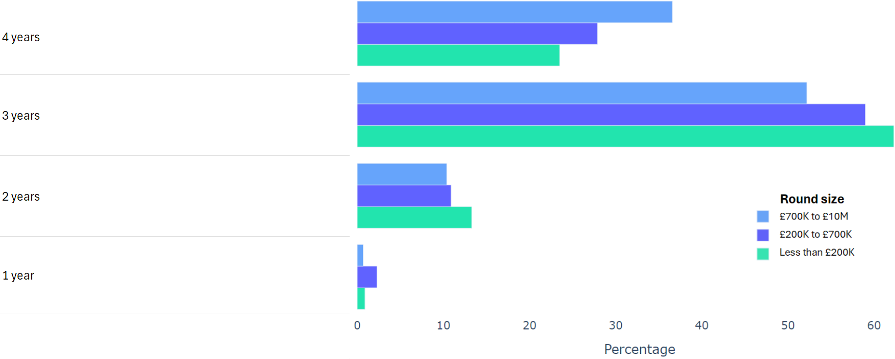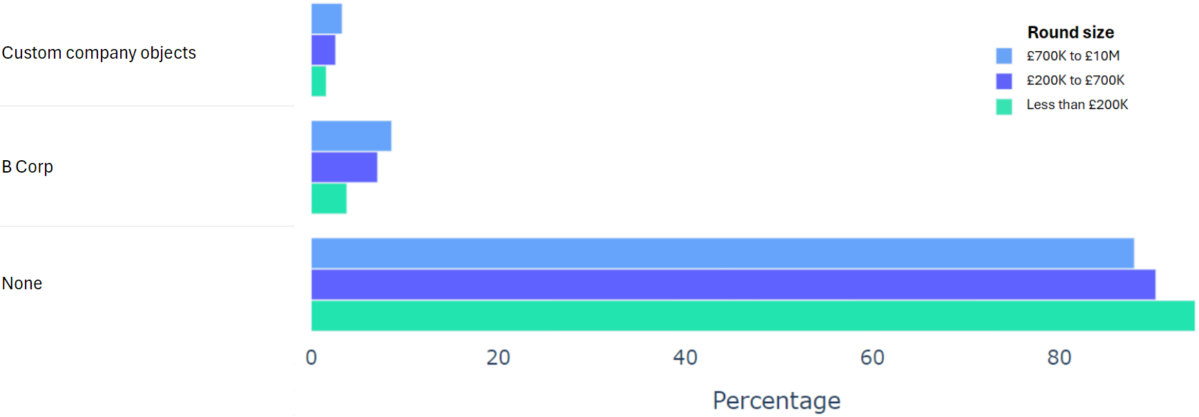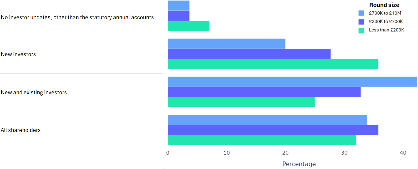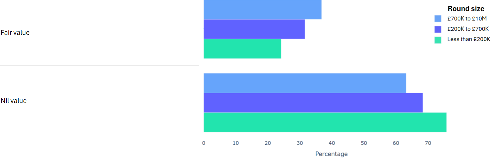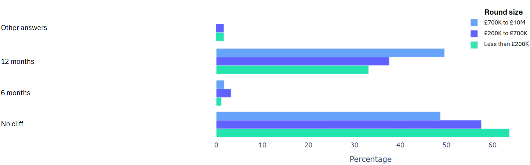 Using data from 2000+ funding rounds done on SeedLegals, we analysed each of the key terms that founders and investors negotiate in funding rounds done on SeedLegals. We then grouped those into Small (under £200K), Medium (raising £200K to £700K) and Large (£700K to £10M+) rounds. We then created histograms for each deal term, for each round size, to show you what’s market standard for your round.