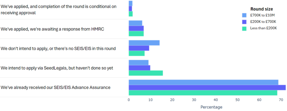 The data shows how important SEIS and EIS is for UK funding rounds, with 85% of companies either getting SEIS/EIS Advance Assurance ahead of starting their round on SeedLegals, or intending to do that.