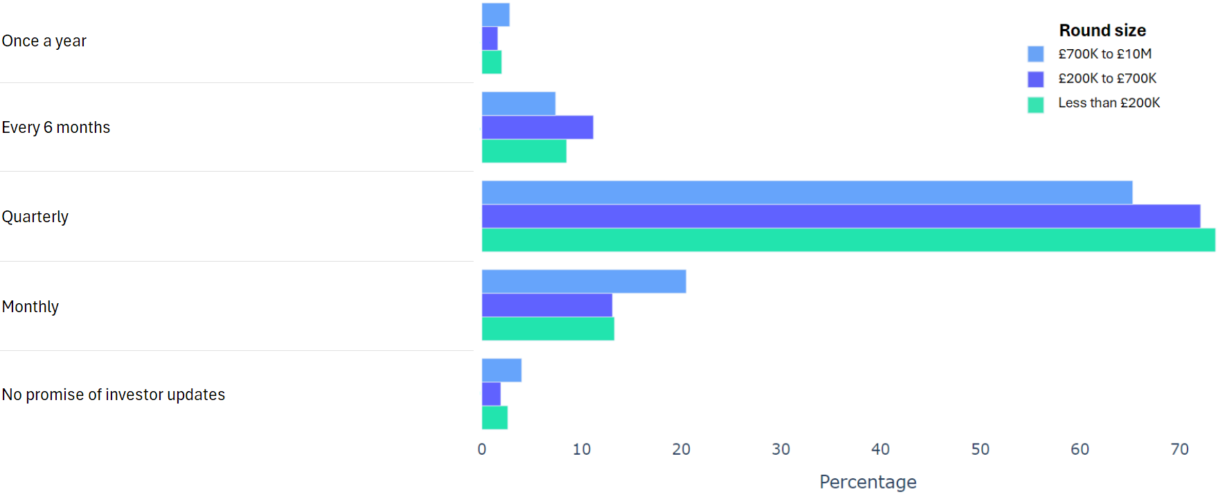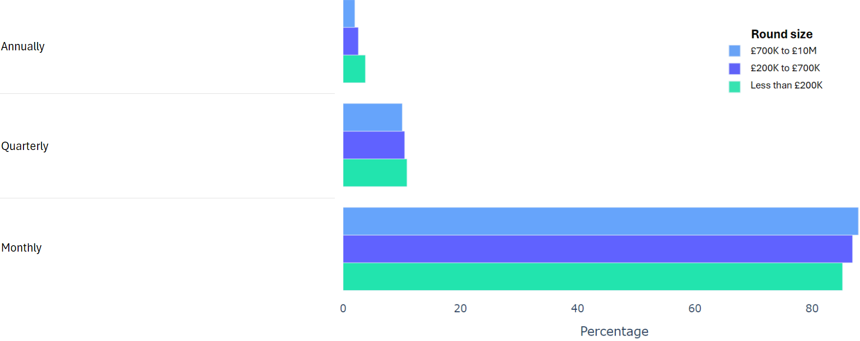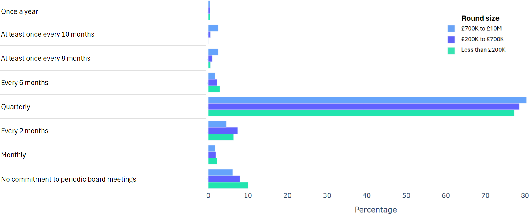 The data shows that most times people go with the SeedLegals suggestion of quarterly.